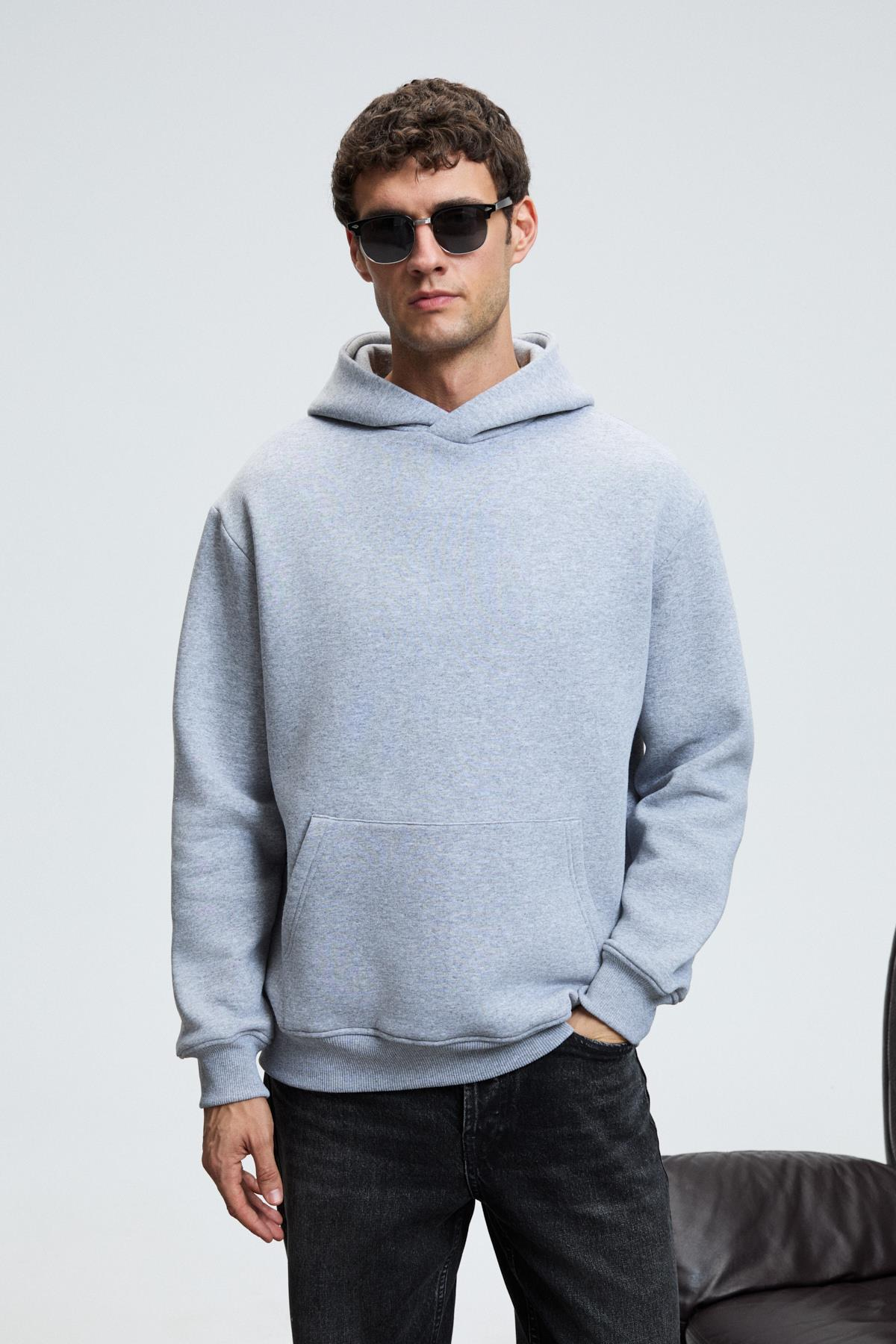 AMOS Erkek Yumuşak Kumaşlı 3 İplik Oversize Kapüşonlu Kanguru Cepli Grimelanj Sweatshirt