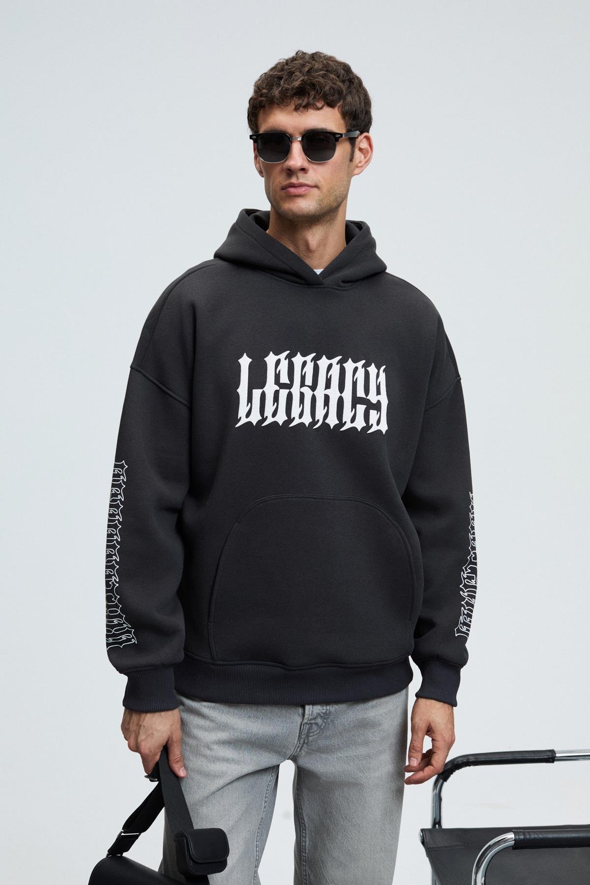 ARMAND Erkek Kapüşonlu Kanguru Cepli Önü Baskılı Oversize Antrasit Sweatshirt