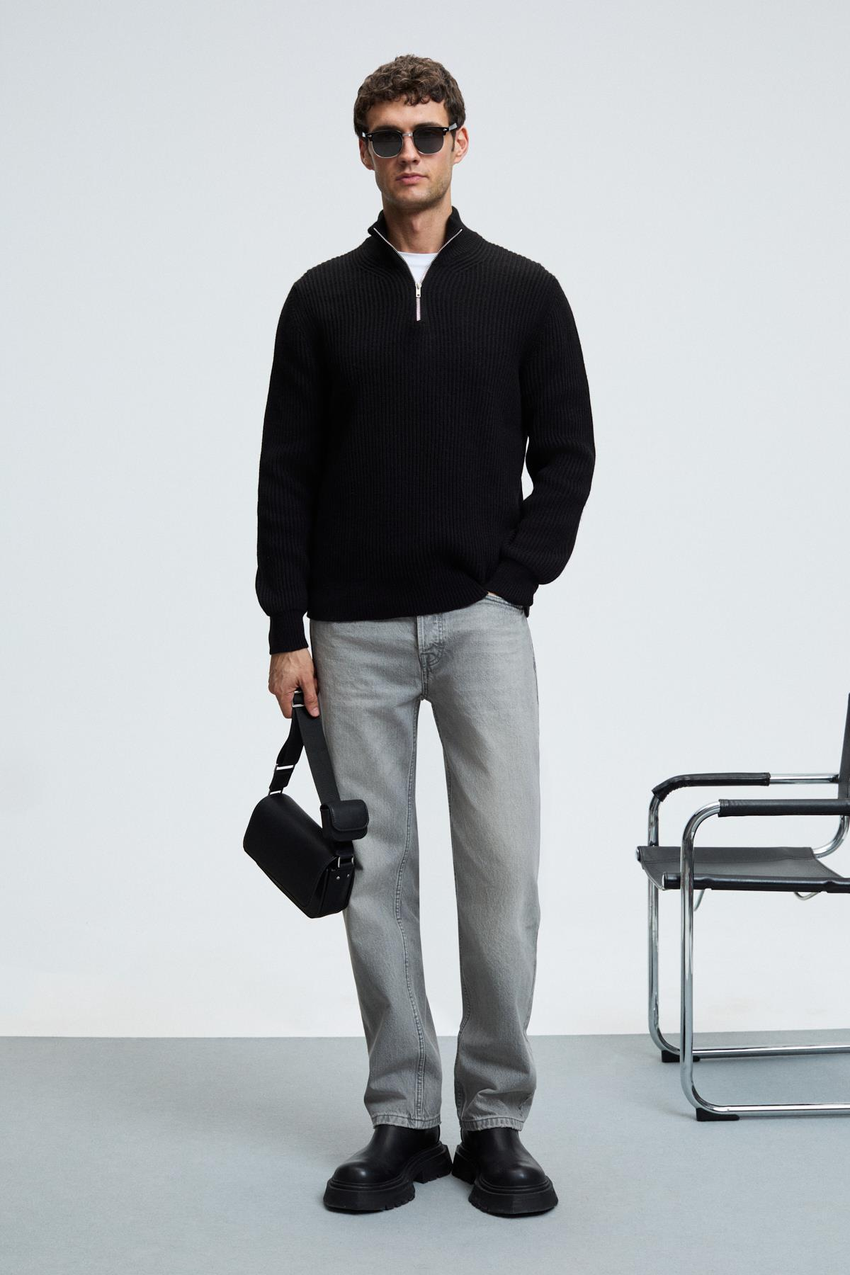 BERNARDO Erkek Yarım Fermuarlı Dik Yaka Triko Siyah Kazak