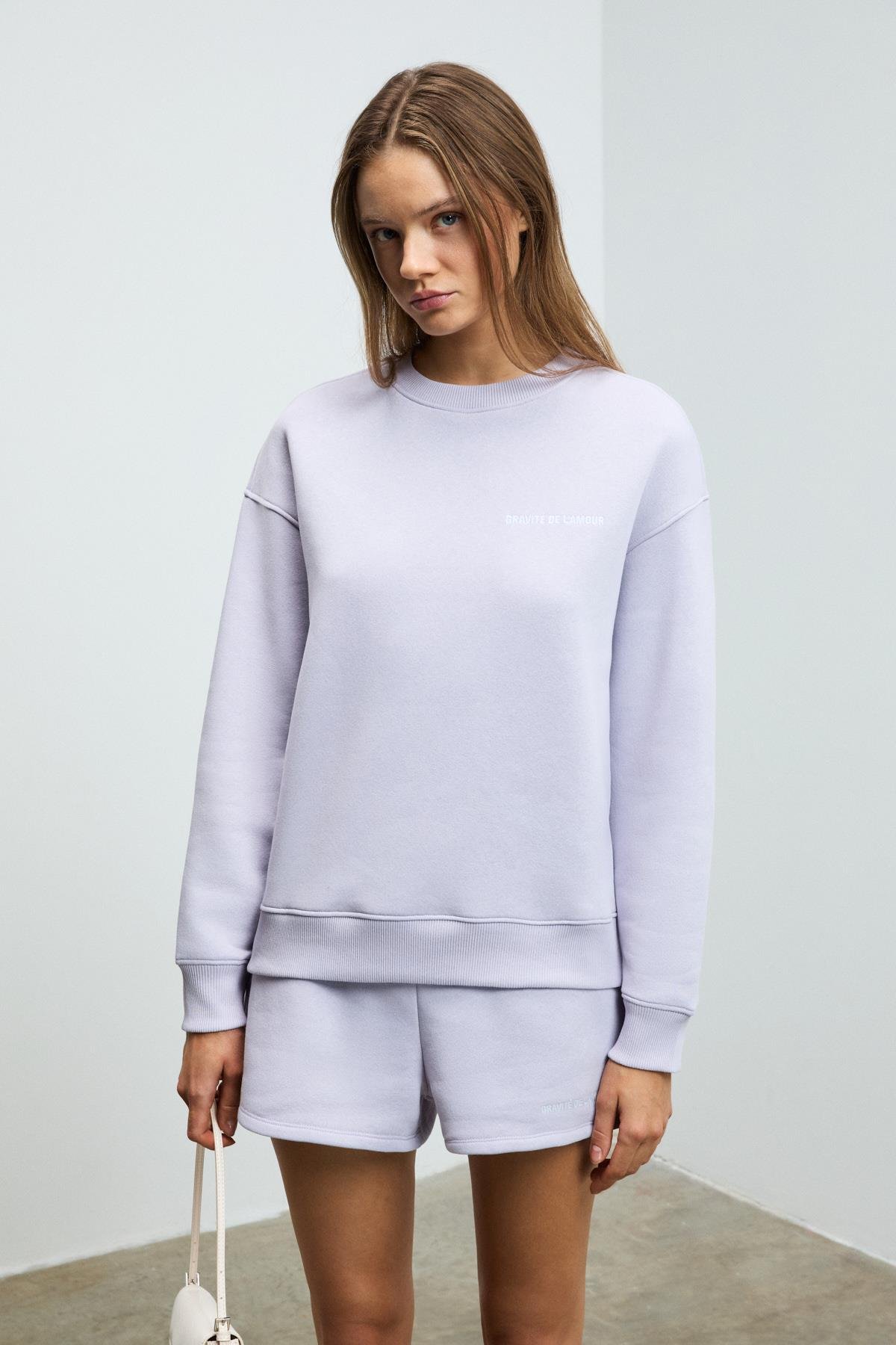 CARROL Kadın Nakış İşlemeli Beli Lastikli 3 İplik Organik Pamuk Relaxed Lila Şort
