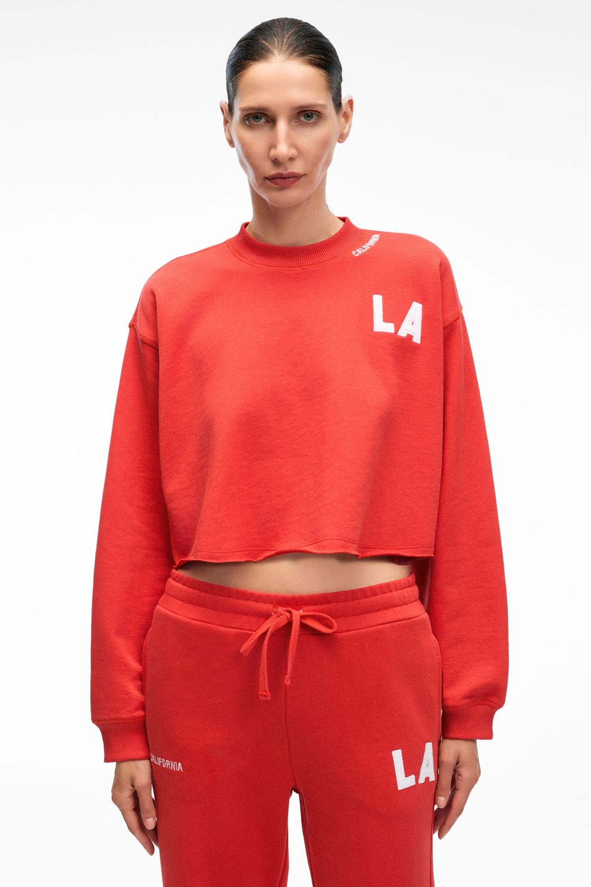 DELYRA Kadın Bisiklet Yaka Rahat Kesim Nakış Detaylı Kırmızı Sweatshirt