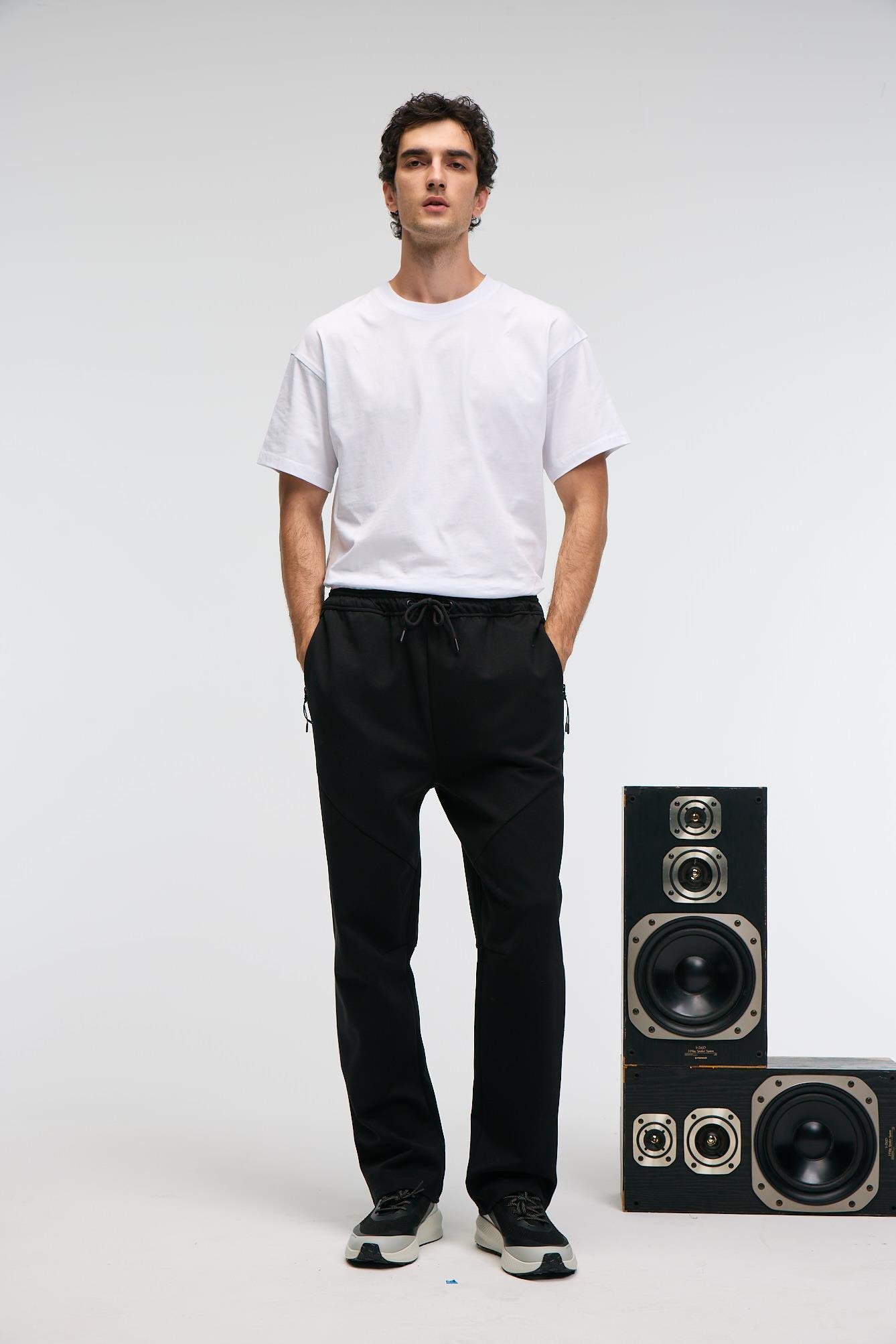 ELLIS Erkek Baskılı Beli Lastikli Kordonlu Siyah Eşofman Altı