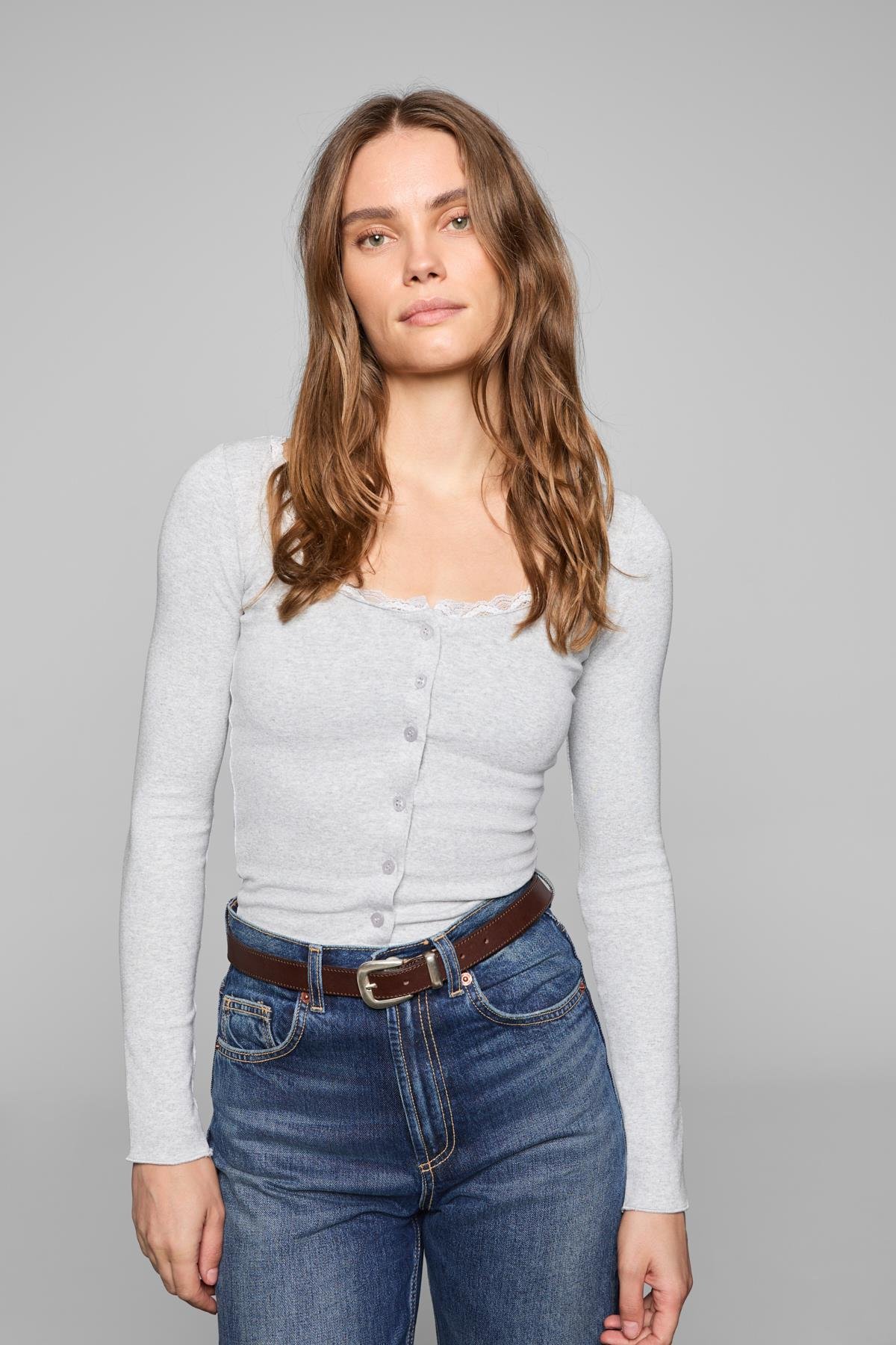 ELVURA Kadın Esnek Kumaşlı Yakası Dantel Detaylı Düğmeli Bluz Ve Atlet İkili Takım Grimelanj Bluz