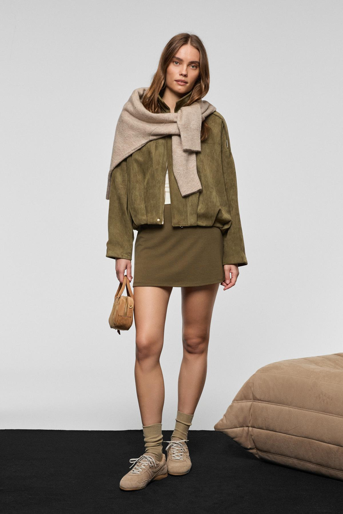 KLAREY Kadın Esnek Kumaşlı Gizli Fermuarlı Mini Haki Etek