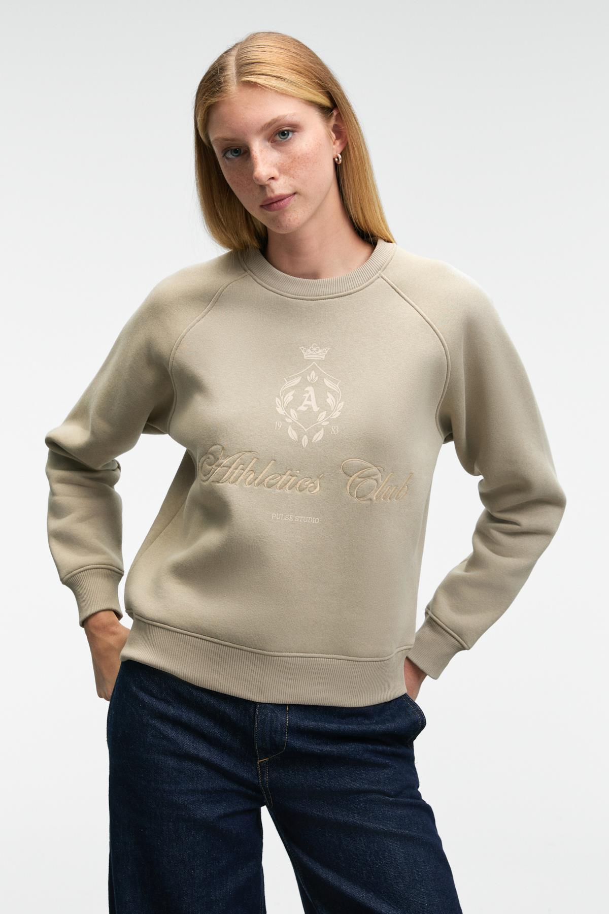 MIRELLAN Kadın Baskılı Yuvarlak Yaka Regular Fit Taş Rengi Sweatshirt