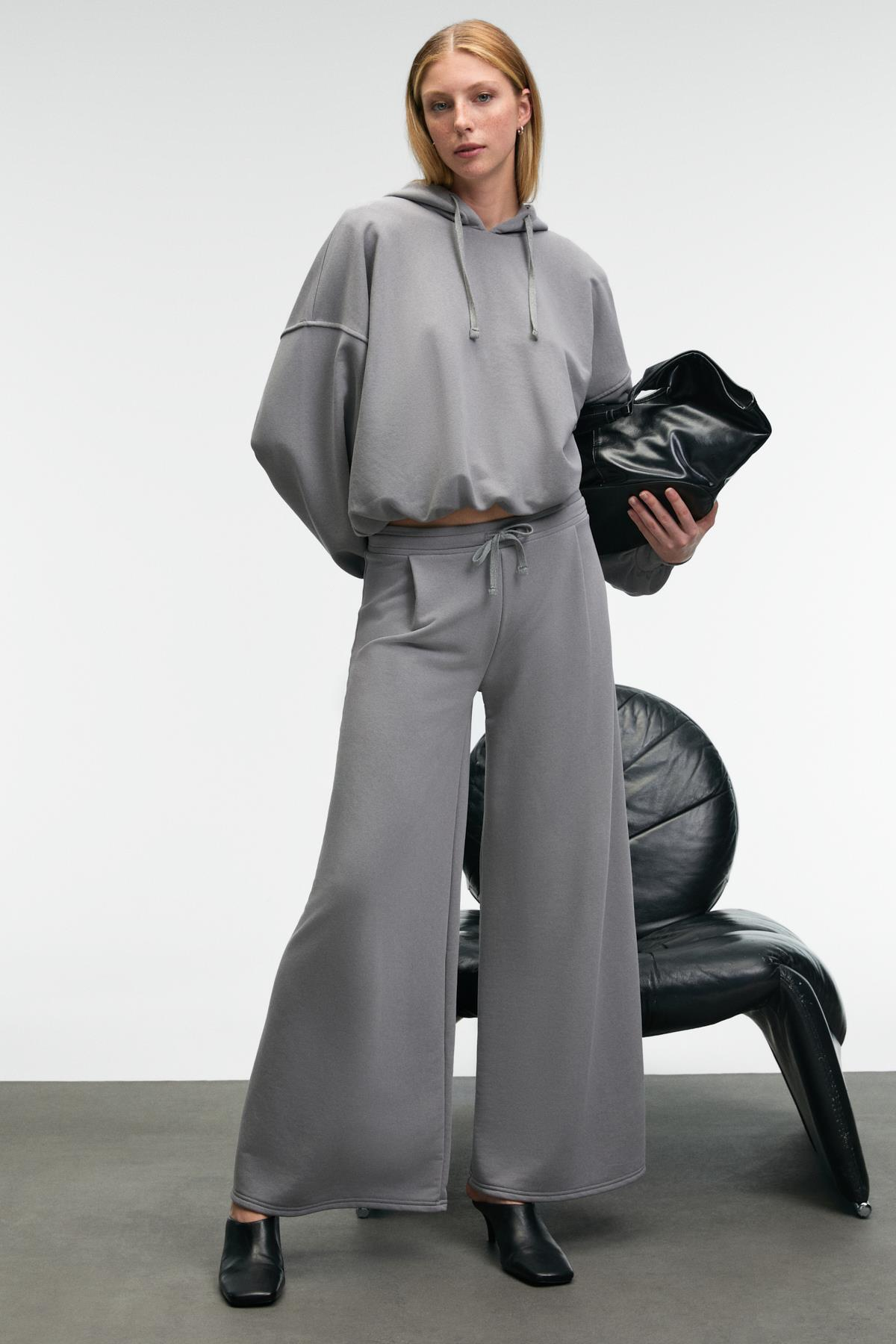 ORMIRA Kadın Oversize Fit Yanları Cepli Lastikli Bel Gri Eşofman Altı