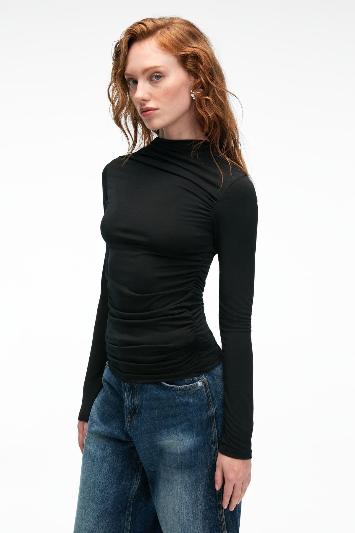 SOLEMA Kadın Bisiklet Yakalı Büzgü Detaylı Slim Siyah Bluz
