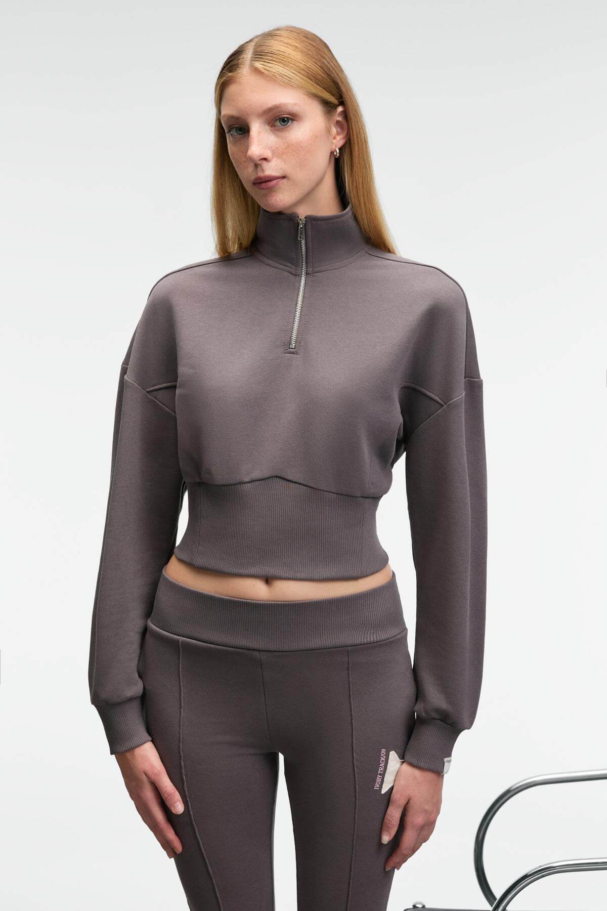 THALIA Kadın Arka Baskılı Ve Patch Detaylı Fermuarlı Dik Yakalı Antrasit Sweatshirt