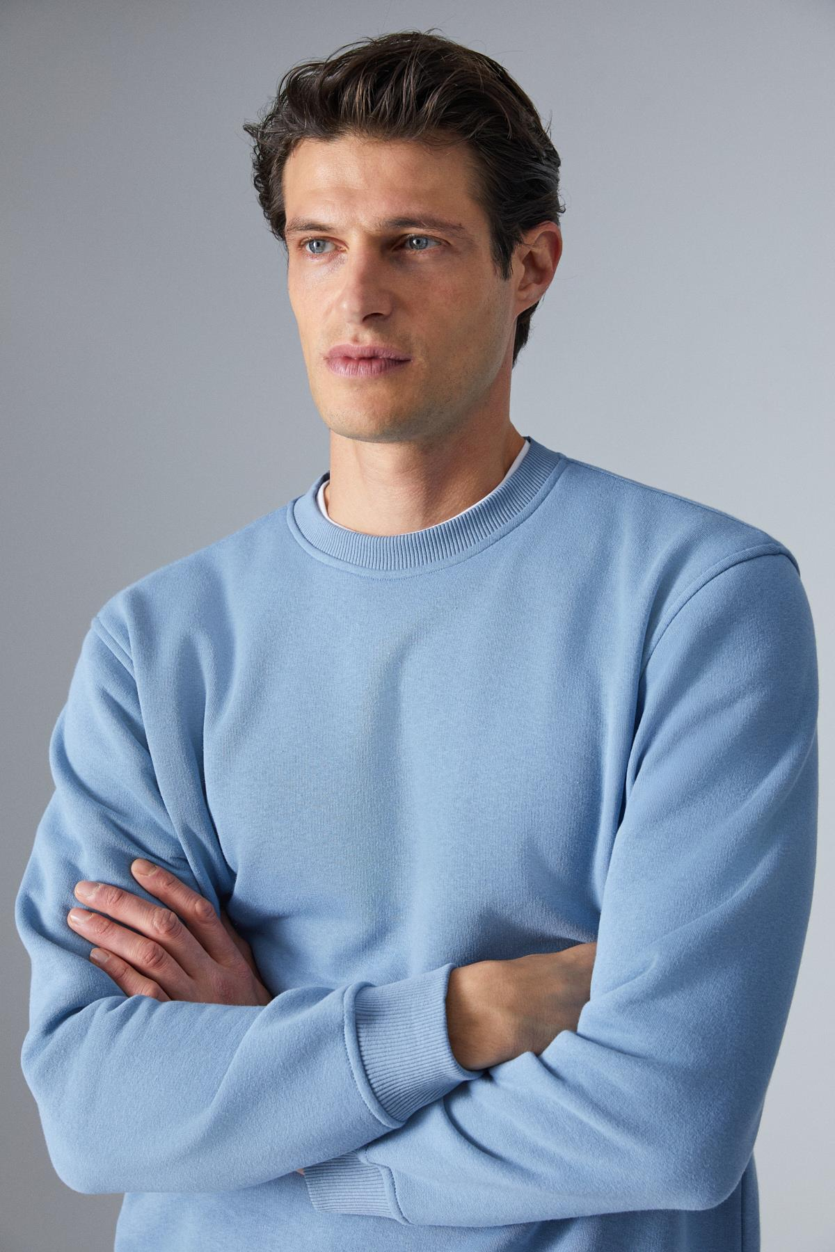 TRAVIS Erkek Organik Kumaşlı Yumuşacık Regular Fit Yuvarlak Yakalı Koyu Mavi Sweatshirt