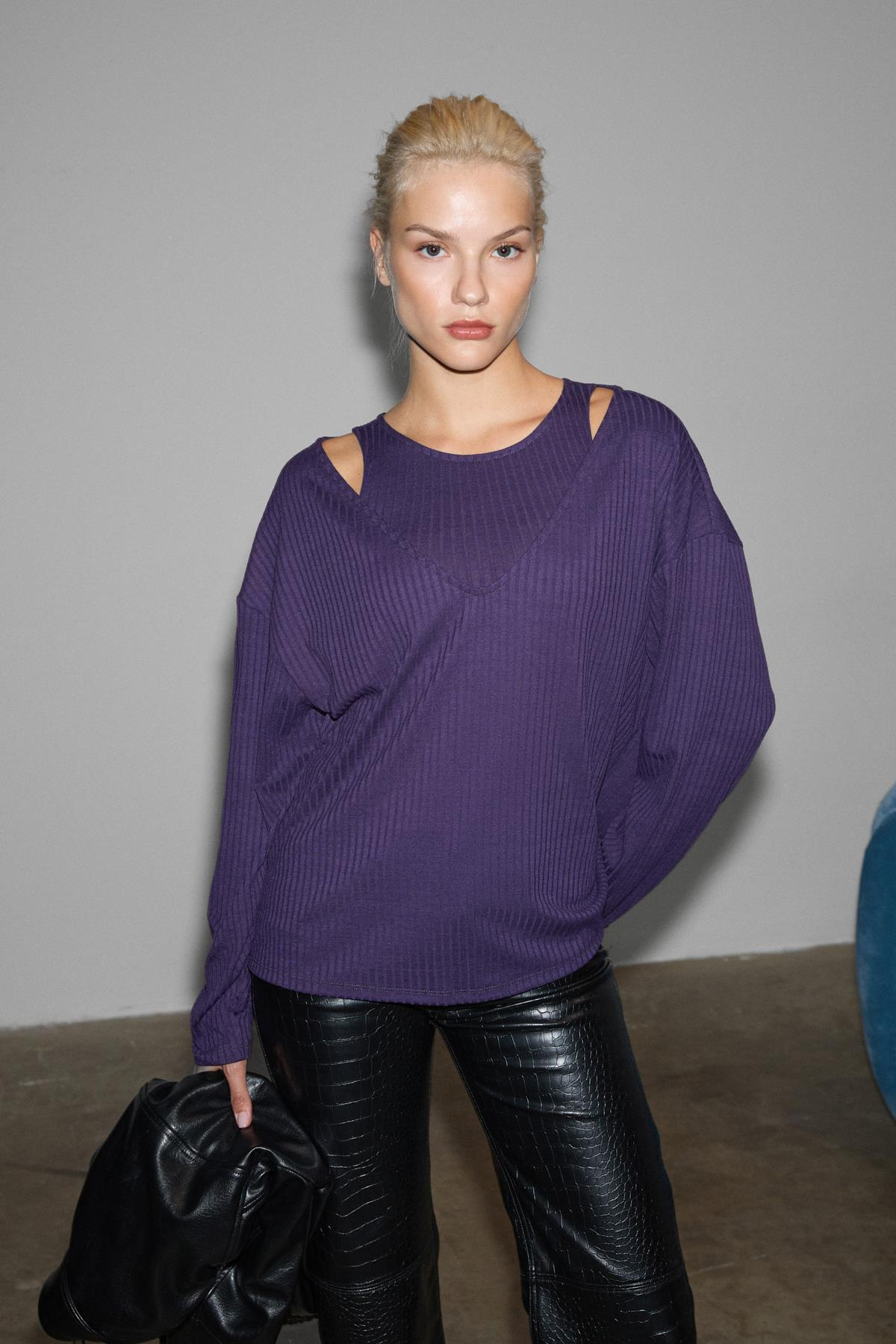 ZARREUS Kadın Omuz Dekolteli Esnek Kumaşlı Rahat Kalıp Mor Bluz